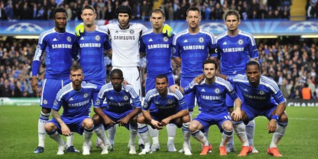 Chelsea: 1-Peter Cech, 2-Branislav Ivanovic, 3-Ashley Cole, 24-Gary Cahill, 26-John Terry, 7-Ramires, 8-Frank Lampard, 12-John Mikel Obi, 16-Raul Meireles, 10-Juan Mata, 10-Didier Drogba.