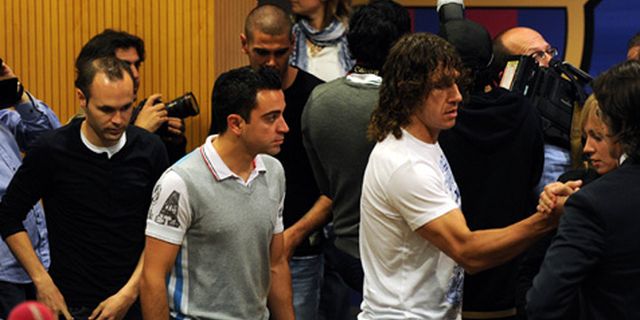 Empat kapten ; Carles Puyol, , Victor Valdes, dan Andres Iniesta memang hadir sejak awal konferensi pers. Kemudian Gerard Pique, Predro Rodriguez, Sergio Busquets, dan Cesc Fabregas juga menyusul.