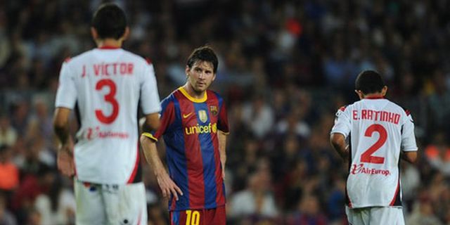 Berulang kali membahayakan gawang lawan dan tak jua membuahkan hasil, Barca justru kecolongan tiga menit jelang turun minum. Sundulan Emilio Nsue dari situasi sepak pojok tak bisa dibendung lini belakang tuan rumah.