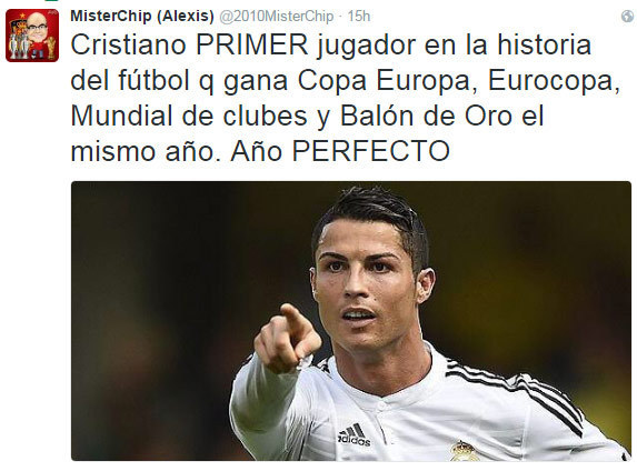 Ronaldo meraih gelar European Cup/Liga Champions, Euro, Piala Dunia Antarklub dan trofi Ballon d'Or di tahun yang sama. Dia adalah pemain pertama sepanjang sejarah sepakbola yang sanggup melakukannya.