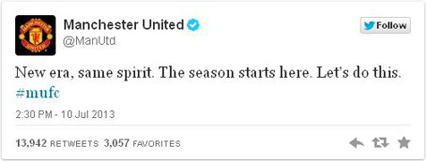 Meski begitu, harian Inggris The Guardian melaporkan bahwa Setan Merah adalah klub Premier League terakhir yang memiliki akun Twitter. Akun tersebut diresmikan pada hari Rabu (10/07/13).