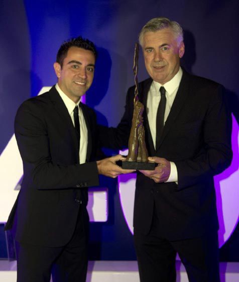 Ancelotti terpilih untuk mendapatkan penghargaan sebagai pemimpin inspiratif. Trofi penghargaan ini diberikan oleh Xavi Hernandez.