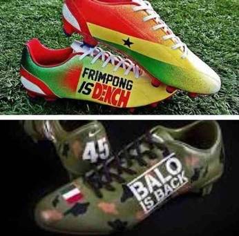 Sepatu ini juga dihiasi oleh slogan 'Frimpong is Dench' atau kurang lebih memiliki arti 'Frimpong si Keren'. Tak lupa ia juga menambahkan bintang hitam sebagai perlambang bendera Ghana.
