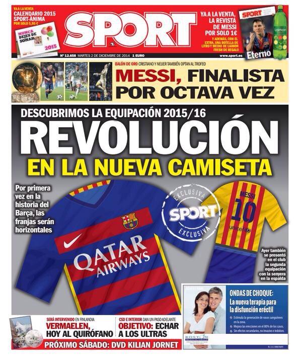 Dalam gambar yang dimuat sebagai cover halaman depan tersebut, nampak jersey Nike Barca didominasi warna biru dengan strip merah di bagian dada sampai ke bawah. Garis kuning mengisi bagian samping jersey, dan warna khas senyera merah-kuning muncul di bagian dalam kerah.