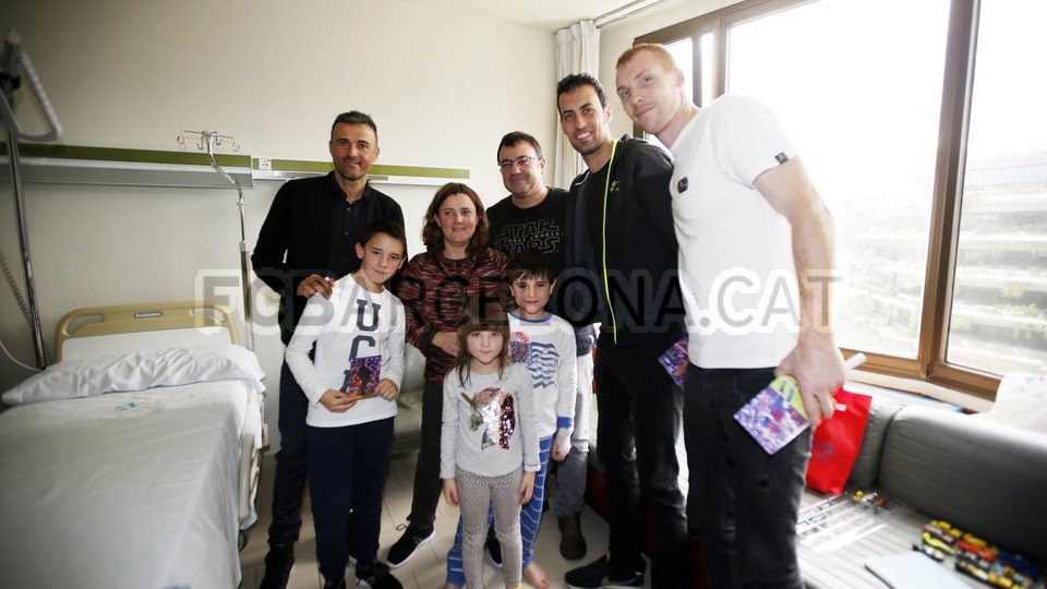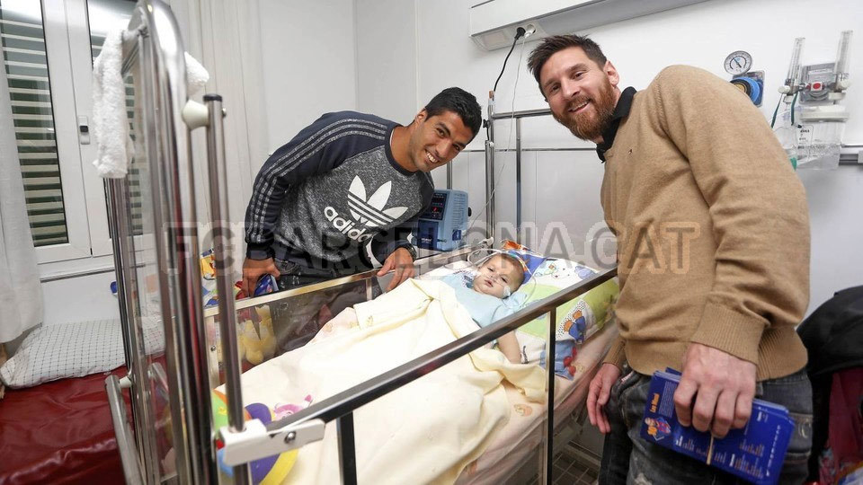 Lionel Messi dan Luis Suarez, didampingi Mestre, berkunjung ke Hospital de Nens de Barcelona, sedangkan pelatih Luis Enrique bersama Busquets dan Mathieu kebagian Hospital de Barcelona.