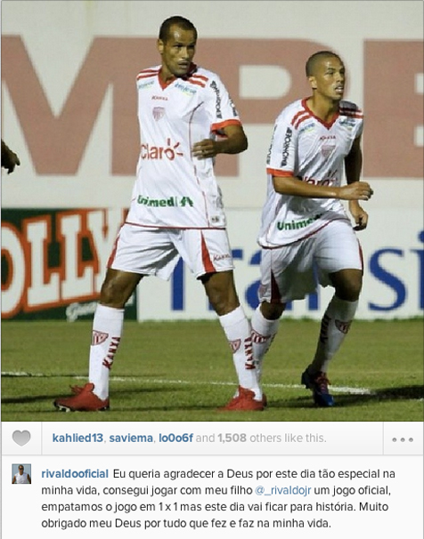 "Saya berterima kasih kepada Tuhan atas hari istimewa ini, saat saya bisa bermain bersama anak saya Rivaldinho di laga resmi. Pertandingan ini berakhir imbang 1-1, namun hasil ini akan selalu diingat sepanjang sejarah. Terima kasih Tuhan atas segala yang sudah Kau berikan."