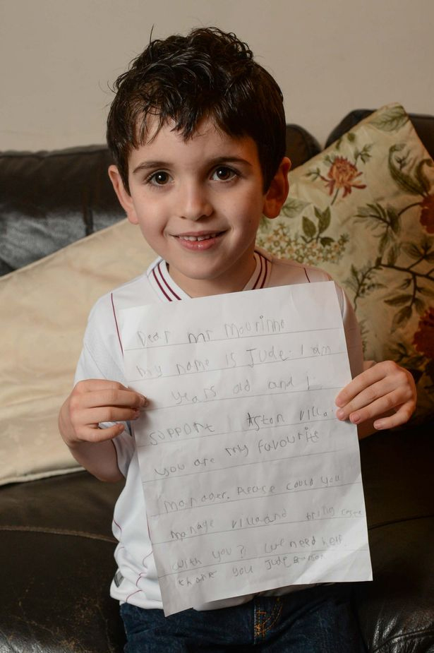 Nama saya Jude. Saya berusia enam tahun dan merupakan pendukung Aston Villa. Anda adalah manajer favorit saya. Saya mohon, bisakah anda melatih Villa dan membawa (Diego) Costa bersama anda? Kami membutuhkan bantuan anda.