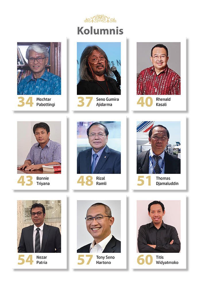 Merdeka bakal mengundang sejumlah tokoh ternama Indonesia untuk menyumbangkan gagasan-gagasan mereka dalam buku ini, sesuai dengan bidang masing-masing. Tulisan para tokoh yang dipastikan akan menghiasi 'Buku 'Merdeka' ini diantaranya dari Rizal Ramli mantan Menko Kemaritiman; Mochtar Pabotinggi; Rheinald Kasali; dan anggota Dewan Pers, Nezar Patria. Para menteri dalam Kabinet Kerja Presiden Jokowi, Hanif Dhakiri (Menteri Ketenagakerjaan) dan Budi Karya Sumadi (Menteri Perhubungan) juga akan ikut memberikan opininya.