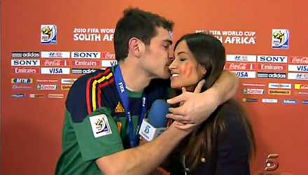 Bola.net - Iker Casillas sempat membuat heboh penggemar sepakbola dunia, terutama kaum hawa, ketika ia mencium reporter Sara Carbonero, yang juga merupakan kekasihnya, dalam sebuah wawancara yang dilakukan segera setelah sang kiper memenangkan Piala Dunia bersama tim nasional Spanyol di Afrika Selatan.