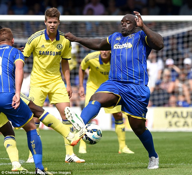 Namun pemandangan unik justru tersaji di atas lapangan, kala striker Wimbledon, Adebayo Akinfenwa beraksi. Pemain asal Inggris tersebut tampak berbeda dengan pemain lainnya, karena punya postur tubuh yang amat besar, seperti yang Bolaneters bisa lihat di bawah ini.