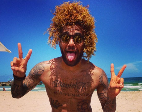 Bedanya, ia hanya bermaksud bercanda dengan fans-nya di dunia maya. Alih-alih menunjukkan gaya rambut nyeleneh, Alves meletakkan ganggang di atas kepalanya, sehingga membuat seolah rambutnya terlihat aneh, seperti yang terlihat dalam foto di bawah ini.