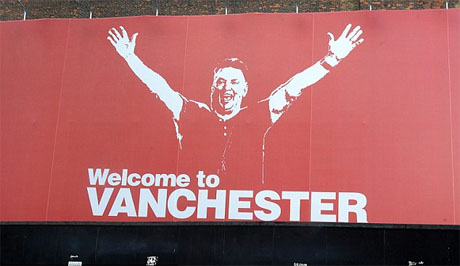Sebuah papan iklan berukuran raksasa dengan tulisan 'Welcome to Manchester' dan gambar Van Gaal belum lama ini dipajang di salah satu sudut Old Trafford serta langsung mendapat julukan 'Vanchester', sebagaimana dilansir oleh The Daily Mail.