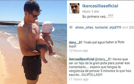 Kontroversi kemudian terjadi kala seorang pengguna Instagram yang menulis komentar bahwa Casillas hendak menaruh sang anak di permukaan laut untuk melihat apakah sang buah hati akan mengapung.