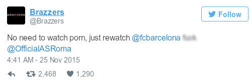 Hasil ini membuat Roma jadi bahan olokan industri porno dunia. Sejumlah Twitter resmi dari situs dewasa melontarkan candaan mereka. Dilansir Gazzetta World, berikut beberapa di antaranya.