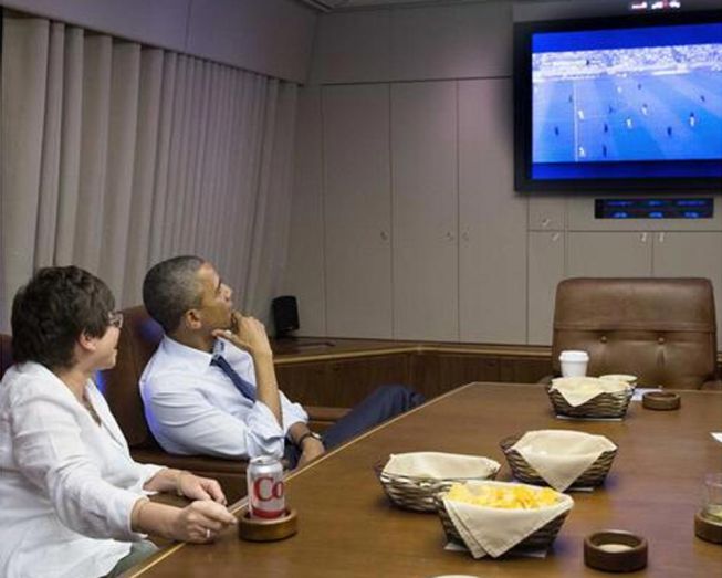 Bola.net - Presiden Barack Obama ternyata juga tidak ingin ketinggalan menyaksikan aksi Amerika Serikat di Piala Dunia 2014.