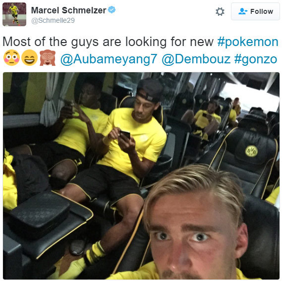 Lewat Twitter, bek Dortmund Marcel Schmelzer menunjukkan bagaimana dia dan rekan-rekannya juga terkena demam Pokemon Go. Dalam foto yang diunggahnya, tampak Pierre-Emerick Aubameyang hingga Ousmane Dembele sedang berburu Pikachu dan kawan-kawan.