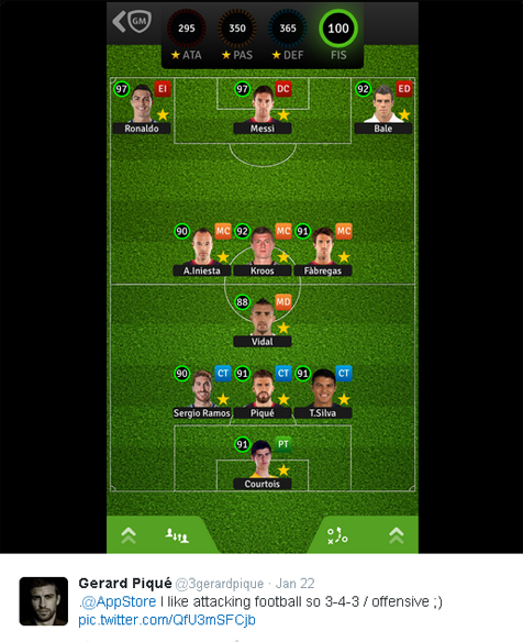 Pemilihan ini tentu menjadi perbincangan hangat di dunia maya, mengingat tradisi permusuhan antara Madrid dan Barca yang sudah sedemikian mengakar. Nampaknya, Pique memilih untuk melupakan rivalitas tersebut demi menyusun tim terkuat dengan formasi 3-4-3 itu.[initial]