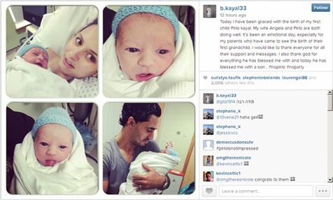"Hari ini saya diberkati dengan kelahiran putra pertama saya, Pirlo Kayal. Istri saya Angela dan Pirlo sama-sama berada dalam kondisi sehat.