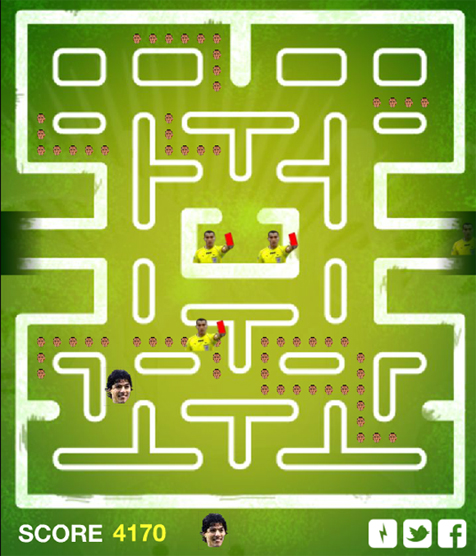 Meskipun gambar Chiellini terpampang di layar intro, namun 'musuh' Suarez dalam game tersebut adalah wasit Marco Rodriguez. El Pistolero memiliki misi untuk menghabiskan seluruh titik yang tersebar di peta sembari menghindari kejaran sang wasit. Seperti game Pacman asli, ia juga bisa 'memakan' sang wasit dengan syarat mengambil item berwujud kacamata.