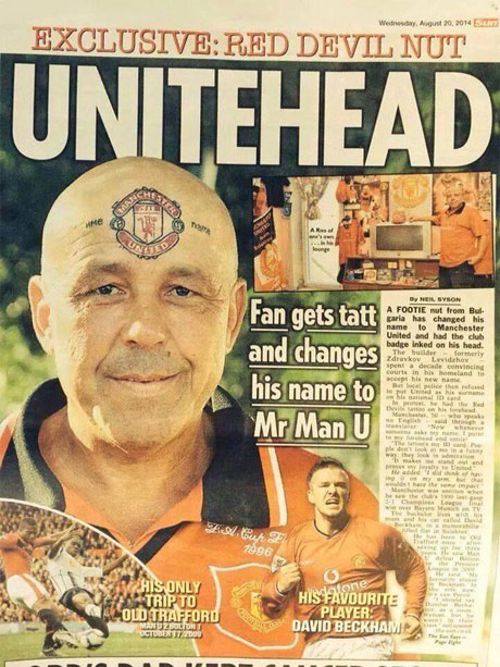 Menurut laporan yang diturunkan oleh The Sun, Zdrackov Levidzhov, begitu nama fans yang dimaksud, secara resmi mengubah namanya menjadi 'Manchester United' untuk menggambarkan betapa fanatik dirinya dalam mendukung Setan Merah.