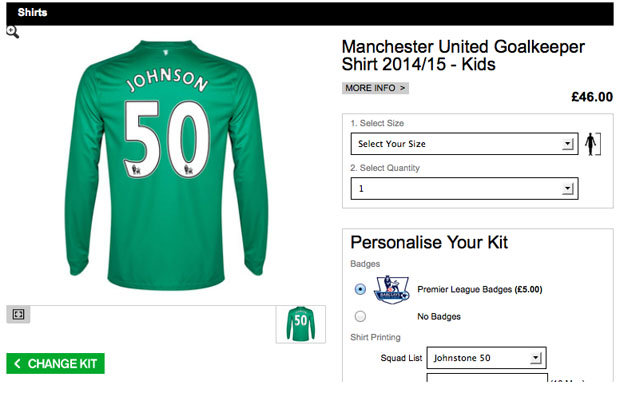 Nama sang pemain mulanya terlihat normal, namun ketika pengunjung menekan pilihan untuk membeli jersey ukuran anak-anak, maka akan terlihat bahwa klub menulis nama yang salah: Johnson.