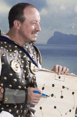 Sementara itu, pelatih Benitez justru tampil unik dengan mengusung papan taktik yang terlihat kuno, sesuai dengan tema kalender.
