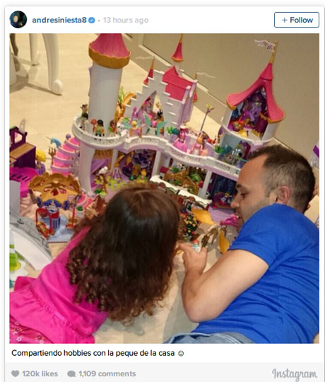 Pemain Spanyol itu belum lama ini terlihat akrab bersama sang putri, kala keduanya sedang asyik bermain rumah boneka. Iniesta pun memutuskan untuk membagi momen tersebut bersama para penggemarnya di dunia maya, dengan menggunggah foto kegiatannya itu di Instagram.