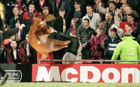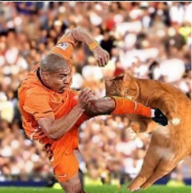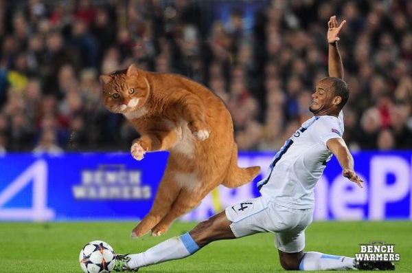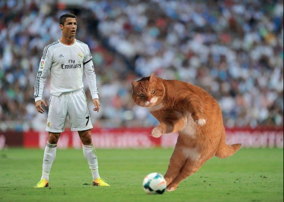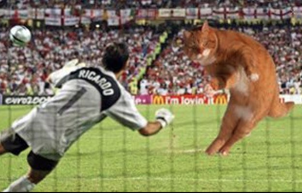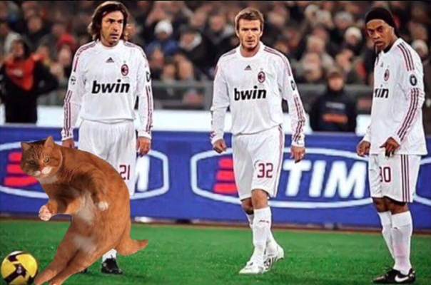 Tidak butuh waktu lama, foto ini langsung tersebar dengan viral di dunia maya. Dan berkat tangan-tangan jahil Netizens, foto Catinho ini disulap seolah-olah kucing ini memang melakukan tendangan bebas di beberapa event terkenal di dunia sepakbola.