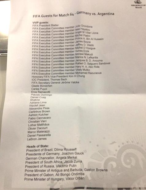 Foto daftar tamu ini sudah beredar di media sosial menjelang pertandingan dimulai. Berikut adalah daftar dan fotonya.
