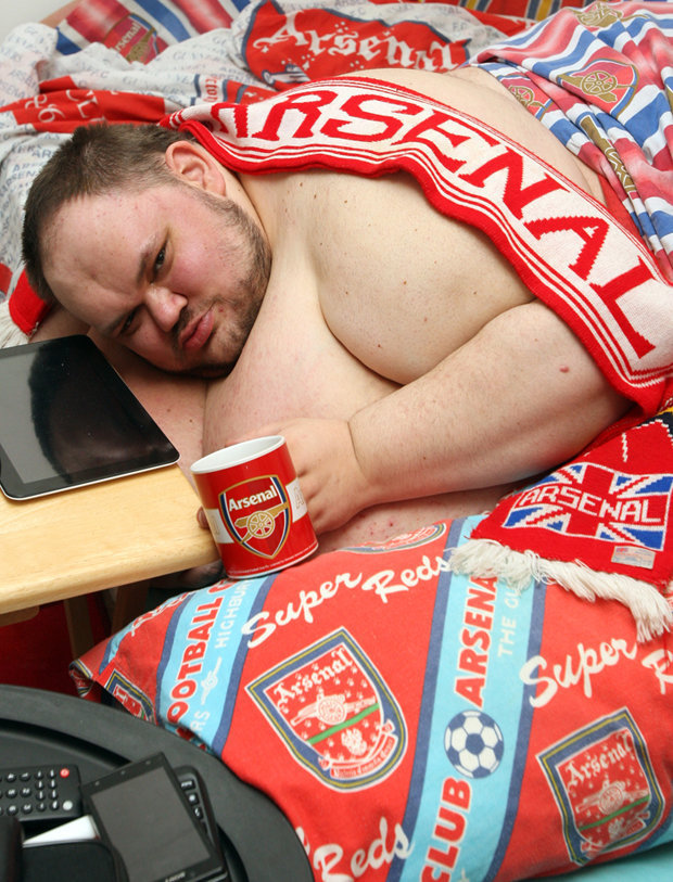 Belum lama ini, Daily Star mengklaim Thompson sebagai fans The Gunners terbesar, dengan bobot mencapai 412 kilogram. Pria berusia 32 tahun ini disebut hanya menghabiskan waktunya seharian di ranjang dan mengonsumsi tak kurang dari 10.000 kalori per hari.