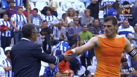 Dalam pertandingan yang dimenangkan oleh Los Blancos dengan skor mencolok 8-2 tersebut, seorang tukang sapu Riazor sempat menghampiri Casillas dan berjabat tangan dengan sang kiper.