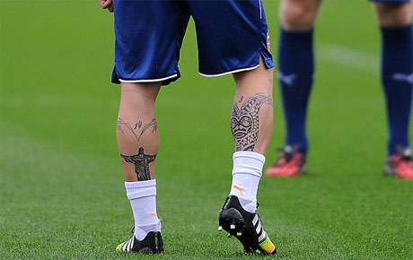 Sedangkan untuk kaki kanannya, pemain berusia 29 tahun itu lebih memilih gambar bermotif tribal khas Aztec.