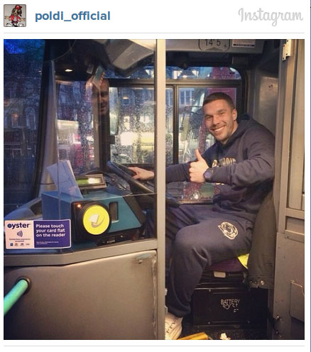 Namun itu bukan masalah bagi Lukas Podolski. Bagi striker Jerman milik Arsenal itu, bus menjadi alternatif yang cukup bagus. Uniknya, ia tak hanya jadi penumpang, namun duduk di kursi pengemudi. Itulah yang belum lama ini terlihat di foto Instagram milik Poldi.