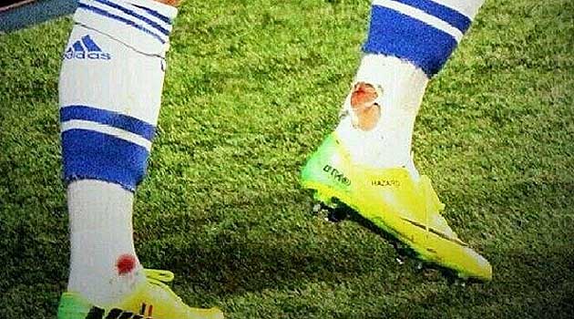 Ya, kaki pemain Chelsea tersebut mengalami robek dan luka yang cukup serius ketika tampil membela timnya di duel melawan Galatasaray (19/03). Gambar yang dilansir oleh Marca menunjukkan kondisi yang harus dialami oleh pemain asal Belgia tersebut. Kaus kaki yang ia kenakan pun bahkan sampai berlubang!