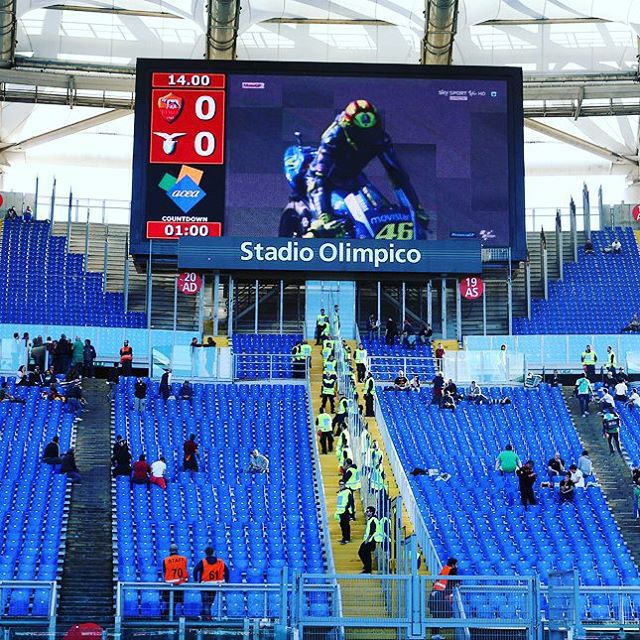 Tak ayal, siaran langsung Moto GP pun langsung diproyeksikan di monitor besar yang ada di Olimpico, meski biasanya hanya digunakan untuk menampilkan skor pertandingan atau informasi mengenai pergantian pemain.