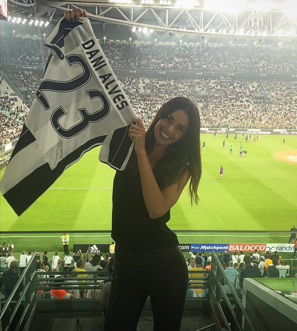 DIa adalah Joana Sanz, kekasih bek anyar Juventus Dani Alves. Dia datang memberikan dukungan buat bek kanan Brasil mantan pemain Barcelona tersebut dalam petualangan barunya ini.
