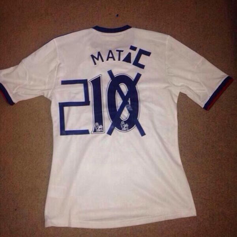 Penggemar satu ini memilih memodifikasi jersey bernomor 10 dan nama punggung Mata sedemikian rupa hingga berubah menjadi nomor 21 dengan nama Matic yang merujuk pada rekrutan anyar Chelsea, Nemanja Matic.