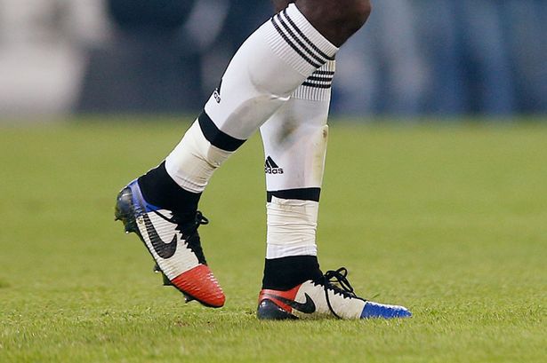 - Gelandang Juventus, Paul Pogba, memberikan penghormatan pada keluarga korban teror Paris dengan mengenakan sepatu anyar bermotif bendera Prancis di pertandingan melawan Manchester City dini hari tadi.