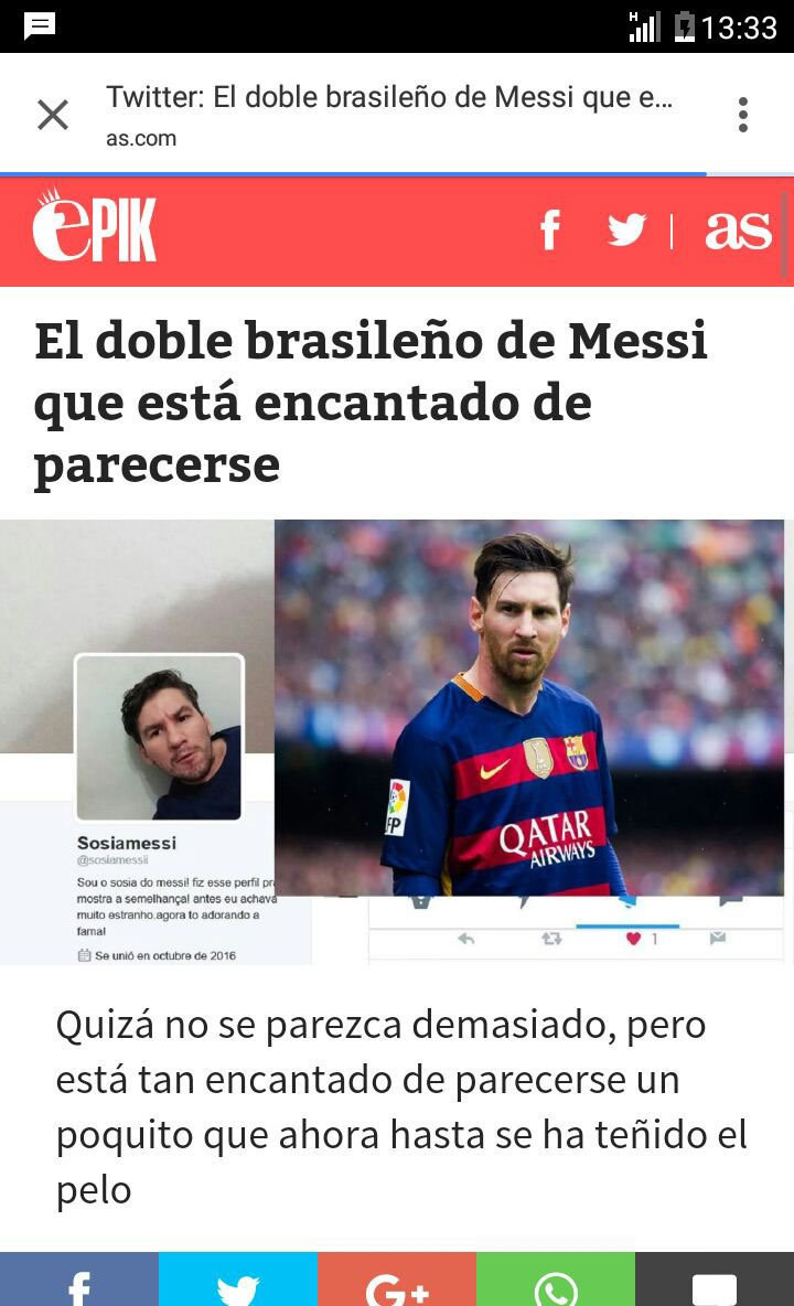 Bola.net - - Ada seorang pemuda asal Brasil yang wajahnya sangat mirip dengan Lionel Messi. Jika foto mereka disandingkan, ibarat pinang dibelah dua, pasti cukup susah dibedakan.
