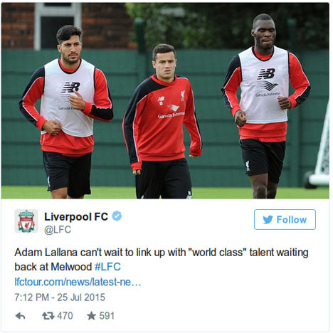 Seperti yang terlihat dalam gambar di bawah ini, akun Twitter resmi The Reds tampak mengunggah foto Philippe Coutinho, Emre Can, dan Christian Benteke sedang berlatih. Namun siapa sangka, foto tersebut ternyata telah di-crop untuk menghilangkan kehadiran Balotelli.
