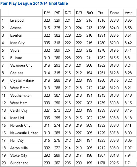 "Kami sangat bangga bisa menjadi tim yang paling fair play pada akhir musim terbaik kami dalam beberapa tahun terakhir," terang pelatih Liverpool Brendan Rodgers.