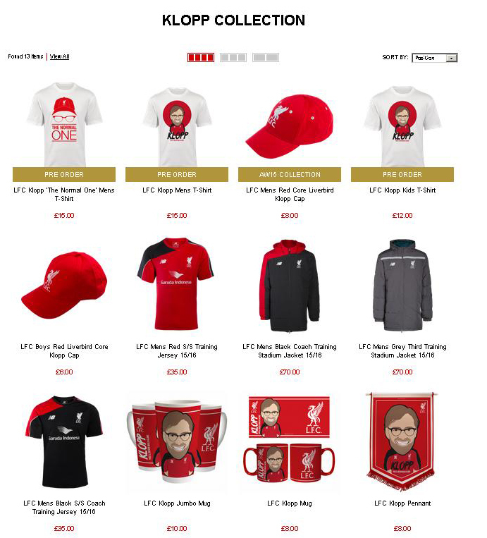 Setelan lengkap mulai dari jaket, kacamata, topi, kaos hingga sebuah mug dirilis oleh klub yang berbasis di Merseyside tersebut. Klub pun tak sungkan memberi nama koleksi mereka kali ini dengan 'Klopp Collection'.