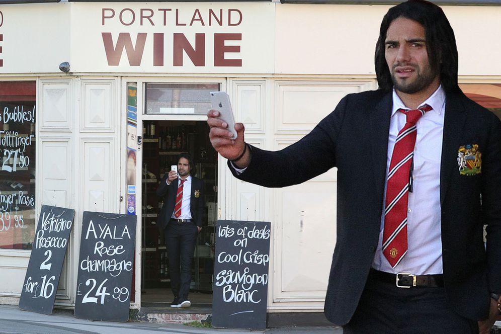 Hanya beberapa jam usai pertandingan, Falcao tertangkap kamera berada di sebuah toko yang khusus menjual anggur merah di Cheshire, atau daerah di mana sang pemain tinggal, sebagaimana dilansir oleh The Mirror