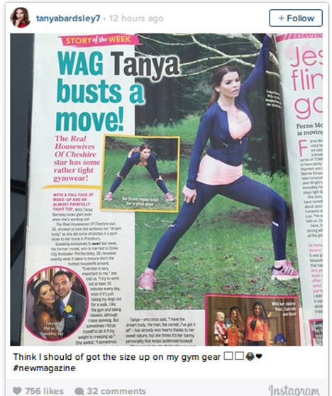 Tak tinggal diam, Tanya lantas mengunggah foto artikel tersebut di akun Instagram miliknya dan menulis: "Sepertinya saya harus memperbesar ukuran baju senam saya."
