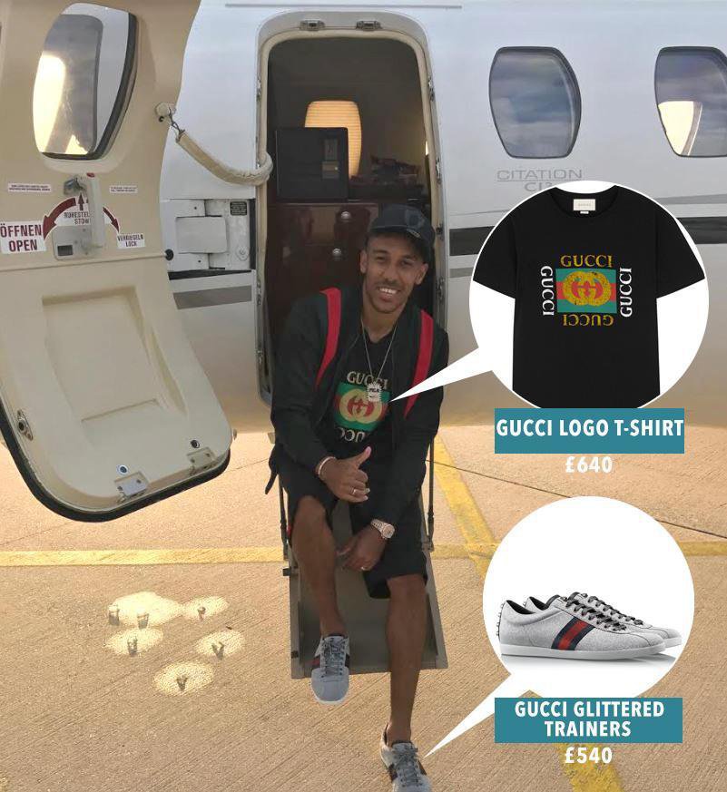 1. Untuk tampil Kasual, Aubameyang menghabiskan sekitar 1.180 Pounds atau sekitar 22,5 Juta Rupiah untuk setelan Gucci