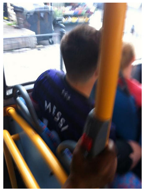 Ya, alih-alih mencetak nama-nama pemain Arsenal, pria ini justru membubuhkan nameset bintang Barcelona itu di jersey bagian belakang yang ia kenakan. Berikut fotonya.
