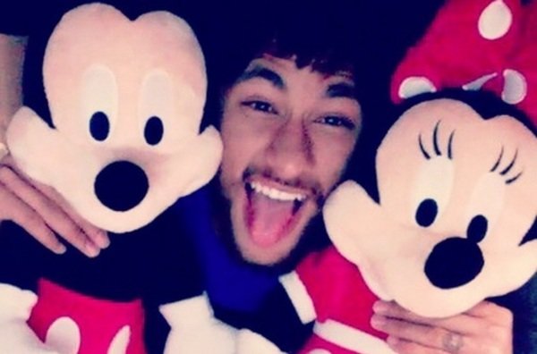 Dalam foto terakhir yang ia unggah pekan ini, Neymar berpose dengan dua boneka Mickey dan Minnie Mouse, sembari mengungkapkan bahwa ia selalu merasa bahagia seperti anak kecil.