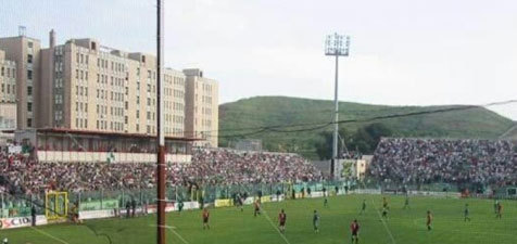 Stadio Ezio Scida bersebelahan dengan rumah sakit San Giovanni di Dio. Rumah sakit modern itu dibangun dengan cukup tinggi sehingga di beberapa lantai atas, pasien bisa menyaksikan pertandingan dengan lapangan yang terlihat penuh.