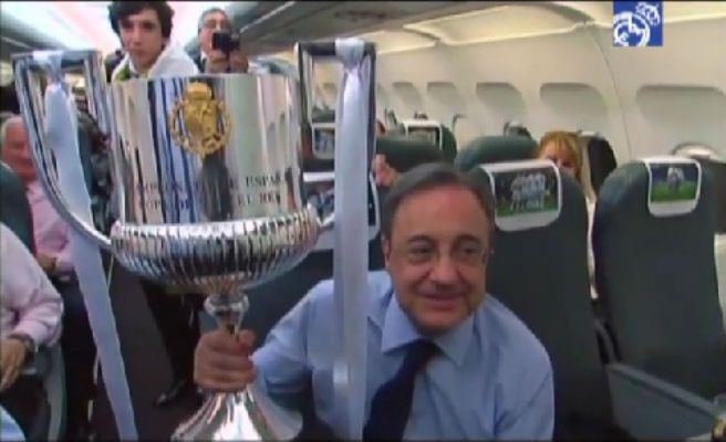 Lebih hebat lagi, sang pemuda juga ikut terbang bersama skuat Madrid dan tertangkap kamera Real Madrid TV.
