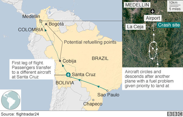 The last words the pilot of the plane carrying the #Chapecoense football team told air traffic control in Colombiahttps://t.co/d8CdpCfN0Q pic.twitter.com/wSfsVgDJL4